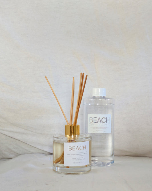 Our diffusers are hand poured and made with non toxic diffuser base & all natural fragrances. They are labelled and packaged in our studio by the sea on the Gold Coast, QLD.